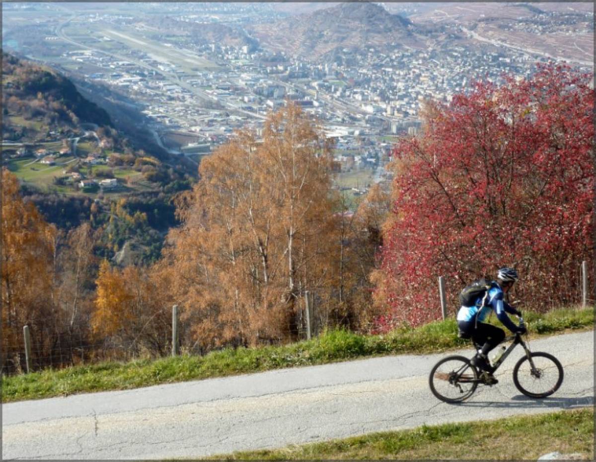 Xème week-end de grand beau en Valais, pendant que les autres cantons se morfondent sous le stratus. C'est en pensant à tous ces malheureux que nous montons la route de Nax bien ensoleillée.Une fois la partie la moins gratifiante avalée, nous transitons entre Nax et Vernamiège, puis Mase par le premier sentier de la journée. Tracé à flanc de coteau ce chemin tranquille nous amène jusqu'à Mase ou nous attend notre première grosse descente de la journée. La descente sur Sevanne est terriblement sèche et poussiéreuse, ce qui rend l'adhérence très précaire. Quelques virages bien techniques agrémentés de slalom entre les moutons et nous nous retrouvons avec Jacques sur le plateau de Sevanne pelé et usé par les ovidés qui profitent de l'absence de la neige pour prolonger leur séjour sur les alpages. Court répit sur le terrain horizontal avant de se retrouver sur les devers qui nous plongent sur Combioula. Du vrai VTT parsemé de difficultés qui se termine par une succession joueuse de virolets serrés qui finissent au bord de la Borgne. Pas de pause dans le fond de la gorge ombragée ou la température a bien changé. Nous poursuivons donc par la remontée sur Vex qui va rapidement nous réchauffer. Débutant par un sentier tranquille, cette montée se redresse au fur et à mesure de notre avancement. Quelques exercices d'équilibre dans l'étroit sillon creusé et raviné ou nous tentons de rester sur le vélo et nous voilà en-dessous de Vex. Quelques coups de pédales plus loin, nous pouvons nous laisser couler quelques hectomètres sur la route principale avant de bifurquer à droite pour rejoindre un sentier qui plonge en direction de l'usine électrique 350m en-dessous. Quelques passages spectaculaires nous proposent une vue directe sur le fond de la gorge bien en contrebas. Un vrai régal ou concentration et maitrise vont de pair. Pour terminer cette magnifique sortie.