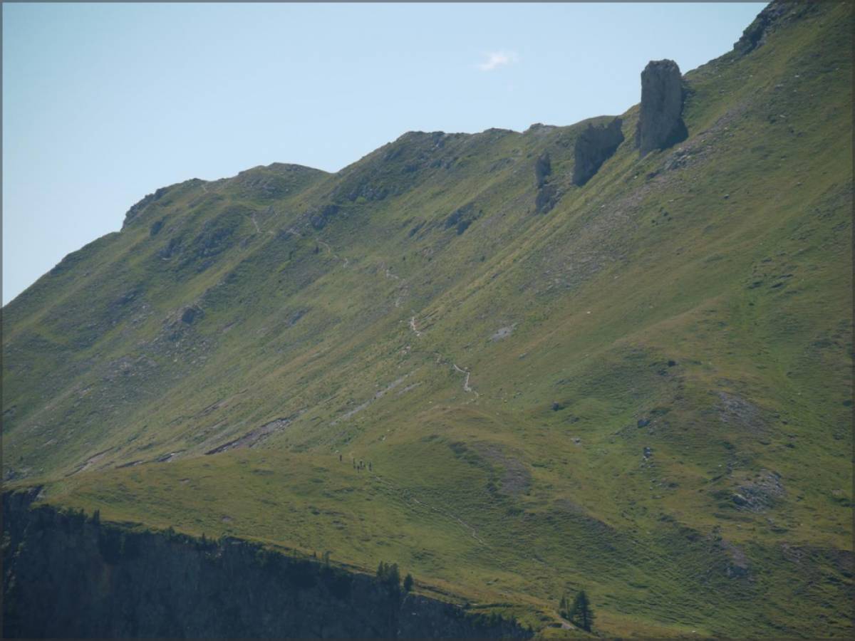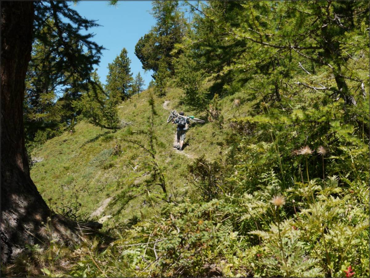 Une fois le lac atteint il faut porter ou pousser son VTT pendant 15 minutes pour atteindre le sentier qui passe au pied du Grand Chavalard.