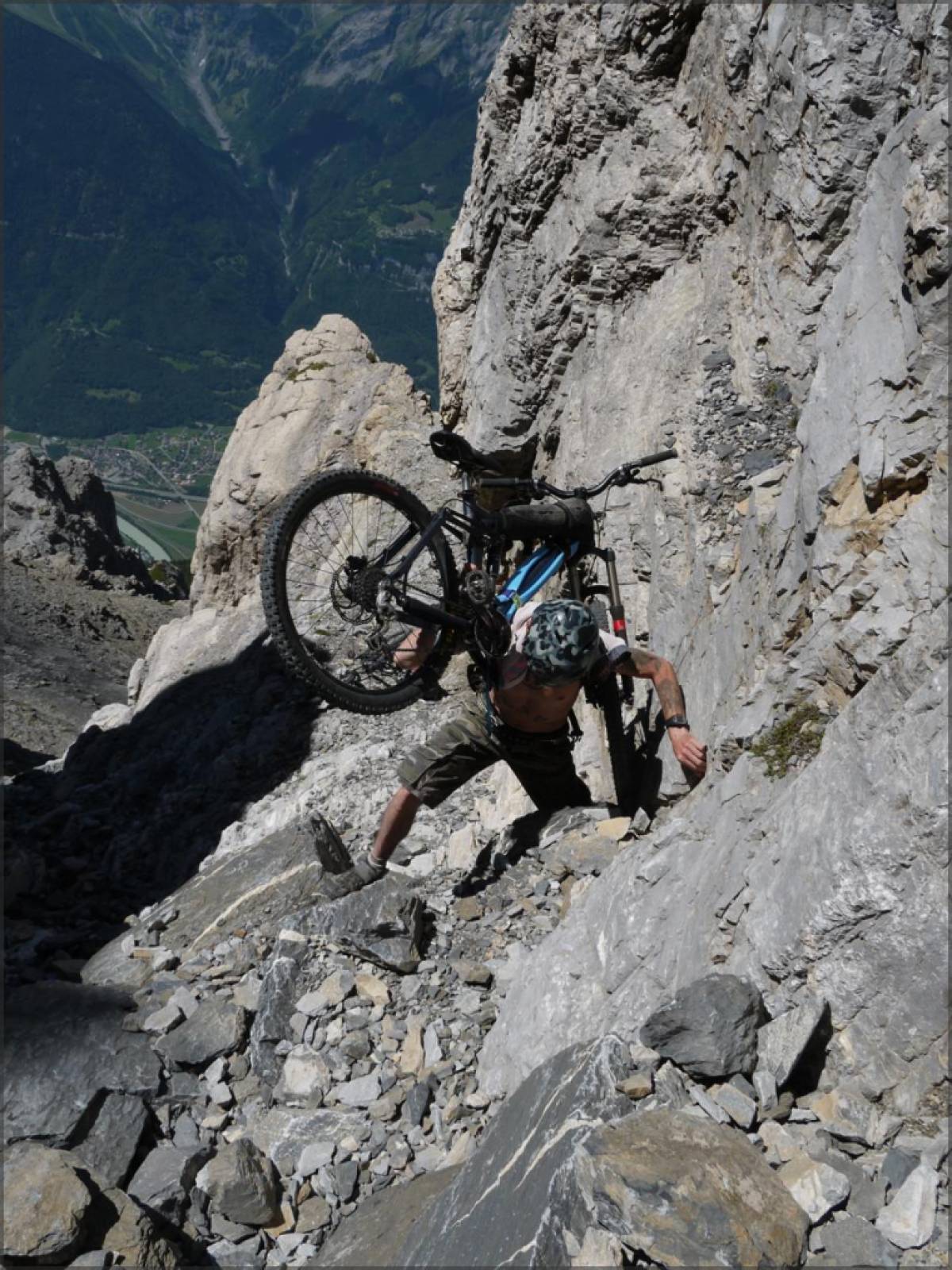 Le portage nécessaire pour atteindre la Dent de Morcles dure 3h au minimum!! Plus de la moitié de ce dernier se fait sur un sentier de moins de 50 cm de large en à-pic d'une falaise, il est impossible de rebrousser chemin, et toute chute pourrait avoir des conséquences définitives ! Le parcours lui-même peut facilement prendre 8h d'efforts continus !