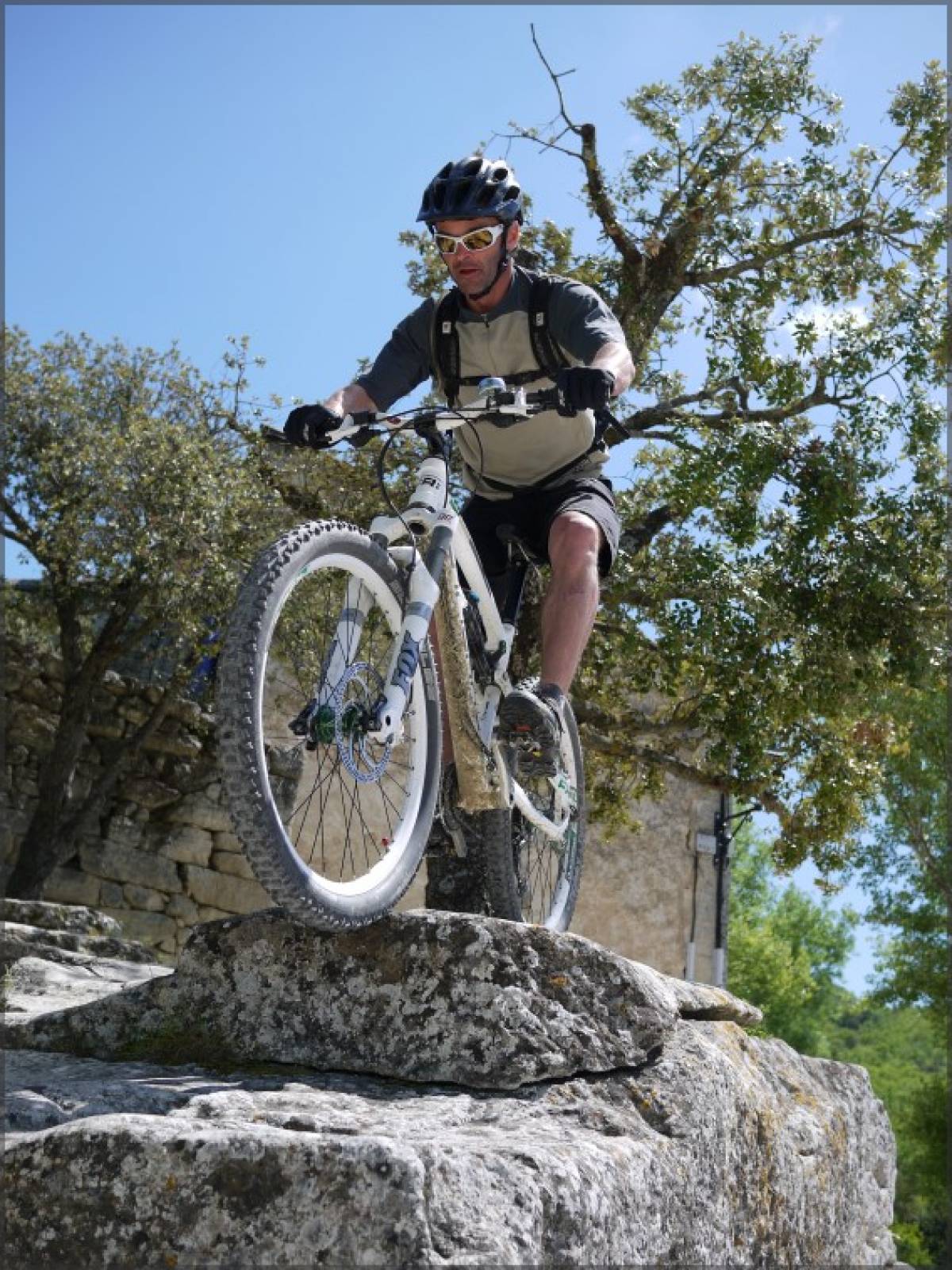 Au départ du joli village de Lourmarin, et après quelques hectomètres de goudron, on emprunte une belle piste, lisse et roulante, avec une pente bien régulière afin d'atteindre la crête du Grand Lubéron. On suivra celle-ci jusqu'au point 855 où on la quittera pour plonger sur le hameau de Sivergues via le GR911. Cette première descente de la journée débute par un sentier pierreux, mais s'élargit rapidement avant de se transformer en piste 4x4. Ce passage est très fréquenté par les randonneurs, n'y allez donc pas à mach 12...