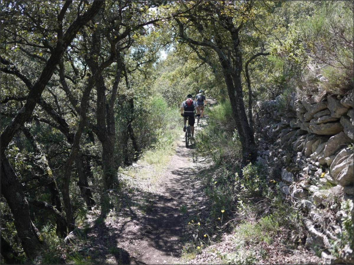 De Sivergues, on récupère rapidement un petit single technique juste comme il faut afin d'atteindre un magnifique sentier ombragé qui suivra pour quelques instants le lit de l'Aigue Brun.