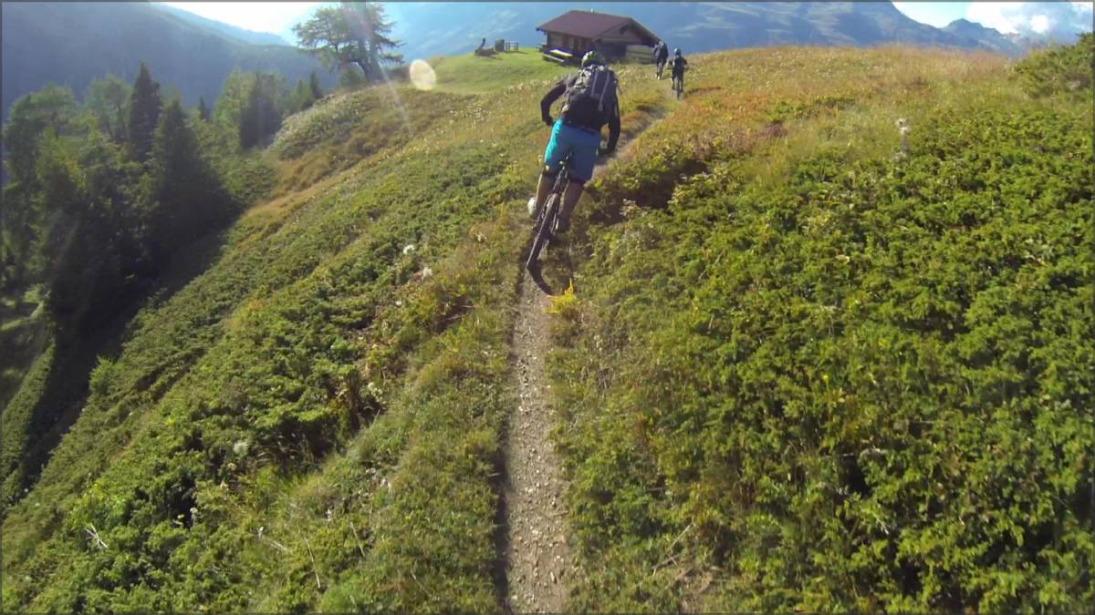Une dernière pause sera alors nécessaire pour avoir l'énergie nécessaire pour avaler les plus de 1100m de DH qui nous séparent encore de Lax. La première partie jusqu'à Bärg est plutôt rapide et assez cassante. Le sentier étant pas mal délavé lorsqu'il pleut, on a par endroits l'impression de carrément rouler dans un bisse, mais le tout reste bien ludique et il suffit de diminuer un brin sa vitesse pour ne plus se faire secouer comme un prunier...