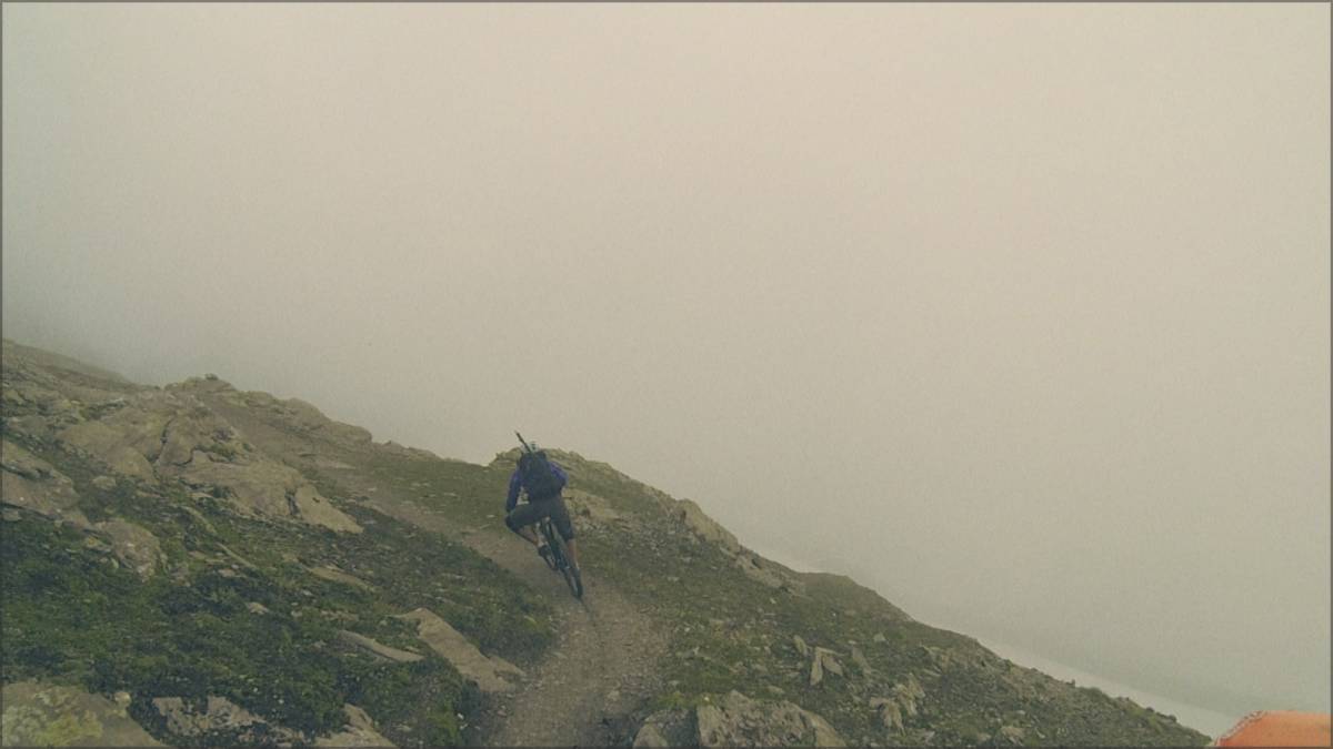 Plusieurs possibilités s'offrent pour la descente. Attention toutefois à ne pas trop s'écarter de l’arête car le pente devient très raide des deux côtés. On suivra principalement le chemin bien marqué dans ces beaux éboulis, très agréable en VTT. On tâchera autant que possible de le préserver et de ne pas trop couper... Quelques épingles serrées et seuils ( ou les deux en même temps ) obligeront le VTTiste moyen à descendre du vélo. Il pourra néanmoins profiter d'env. 75% de la descente jusqu'à la Fenêtre de Durand sur le vélo. L'expert pourra lui envisager toute la descente sans poser le pied.
