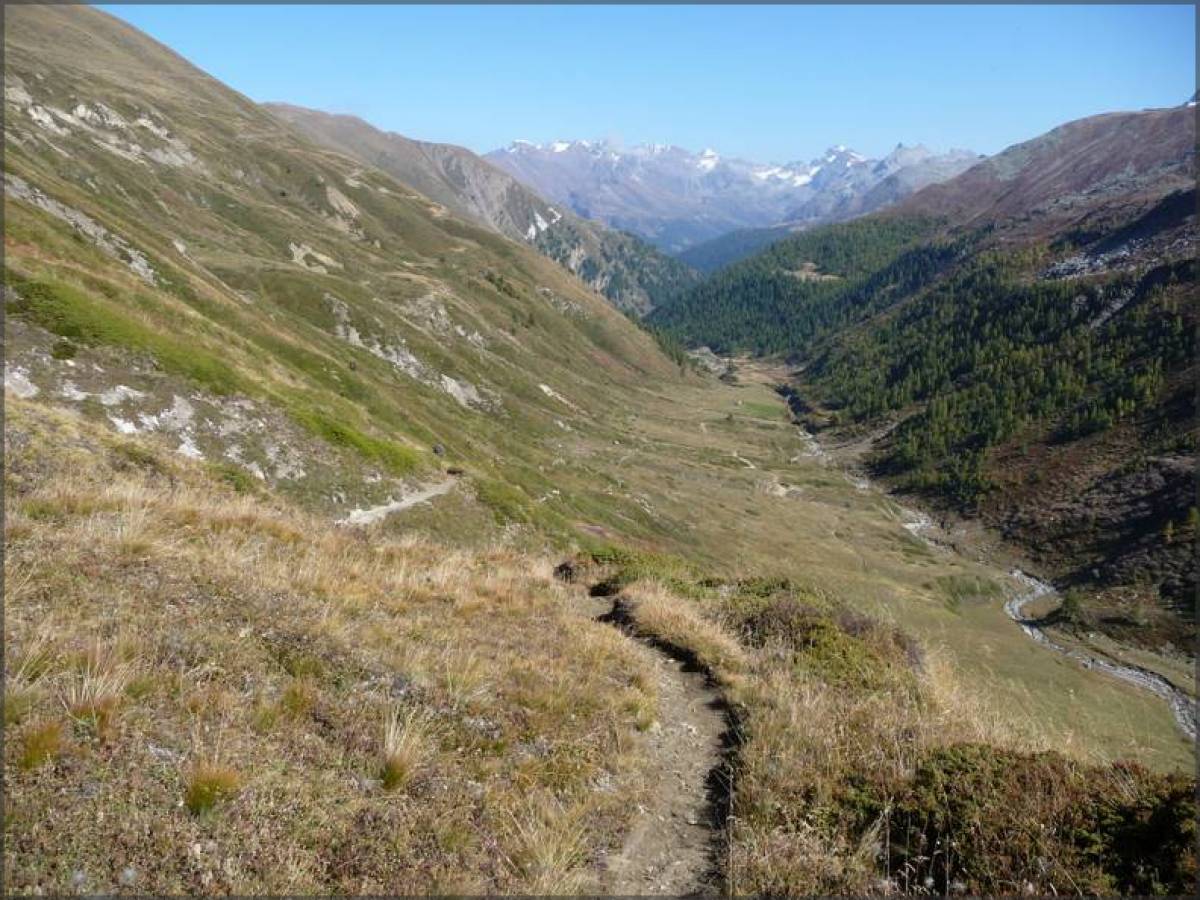 les gorges de Twiingi, la vallée de Binn, le panorama sur le Saflischpass, la descente via Rosswald jusqu'à Ried.