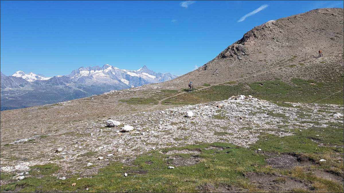 A noter qu'il est aussi possible de descendre côté nord, sur Grengiols depuis le 'col' du pt. 2451, mais c’est plus raide et moins joueur que la descente proposée ici.